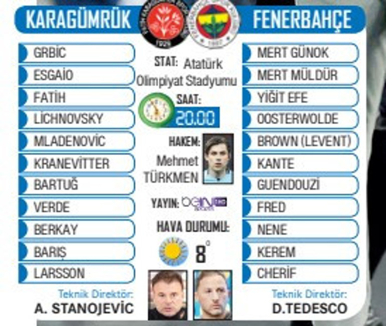 Son haftalarda sakatlıklar nedeniyle üçlü savunma sistemiyle oynayan sarı lacivertlilerin Milan Skriniar’ın yokluğunda savunma zaafları yaşaması, Samsun maçında dörtlü defansa geçtikten sonra maçı çevirmesi nedeniyle teknik yönetici Domenico Tedesco‘nun Karagümrük maçıyla yine 4’lü savunmaya dönmesi bekleniyor.