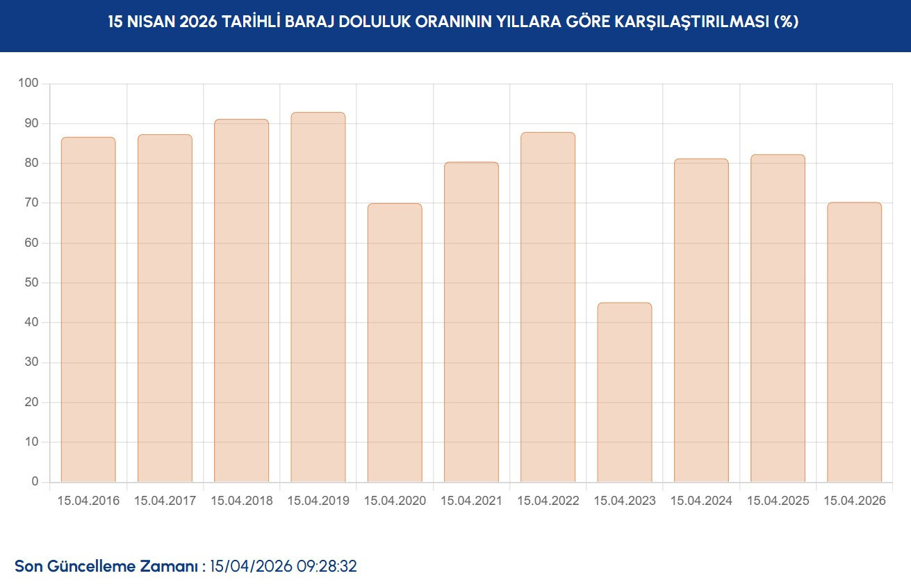 İstanbul 15 Nisan baraj doluluk oranı geçtiğimiz yıl birebir gün 82.36 olarak kaydedilmişti.