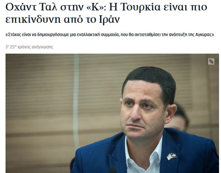 Türkiye aykırısı telaffuzlarıyla bilinen ve toplantının mesken sahipliğini yapan İsrailli milletvekili Ohad Tal, Yunan basınından Kathimerini gazetesine konuşarak hem toplantının perde gerisini anlattı hem de Ankara’yı maksat aldı.