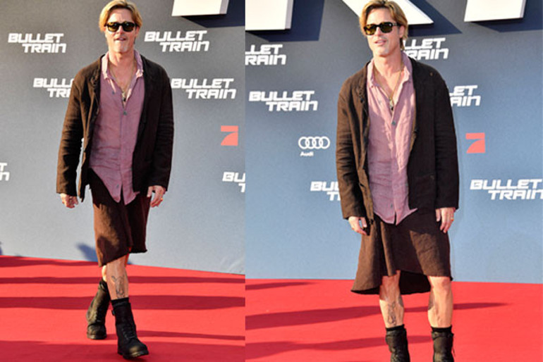 Yine de bugüne kadar en şaşırtan giysi şeklini 2022 yılındaki Berlin Sinema Şenliği’nde sergiledi. Bullet Train isimli sinemanın galasına etekle katılması büyük olay oldu.